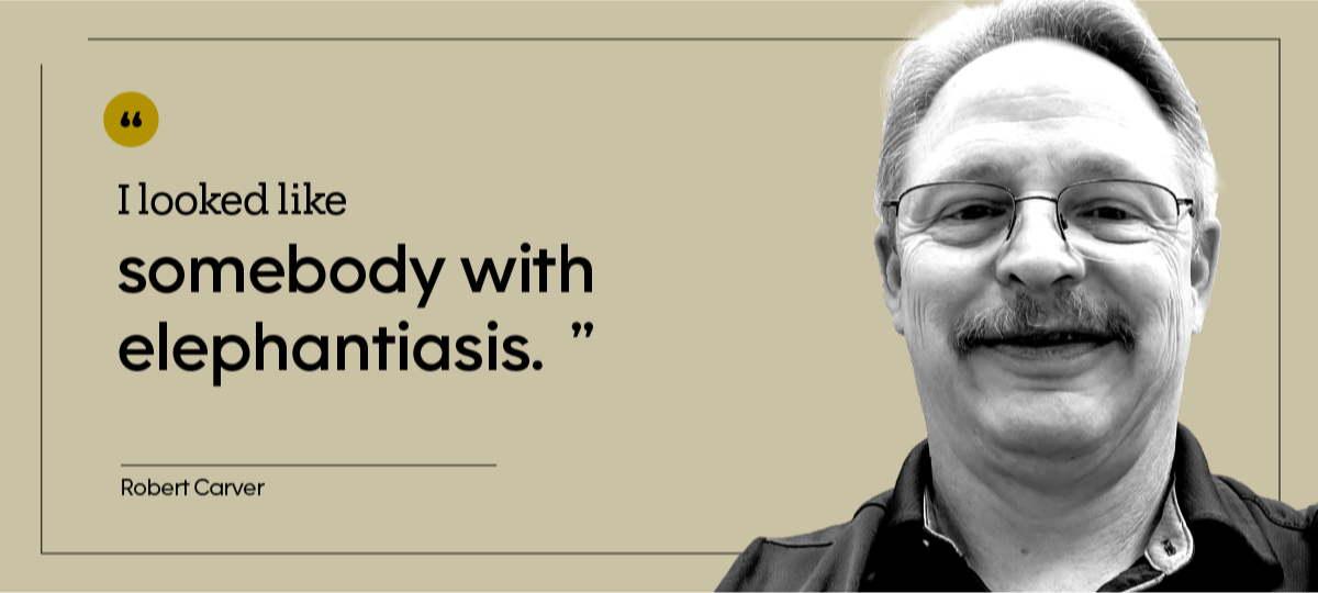 “My whole lower leg started to swell and, basically, I could not see my ankles,” says Robert, who is 61 and lives in Baton Rouge, Louisiana. “I looked like somebody with elephantiasis.”
