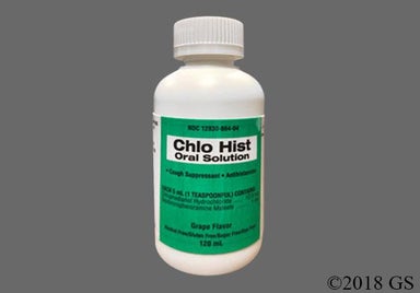 Chlo Hist is a combination medication containing chlophedianol (a cough suppressant) and dexbrompheniramine (an antihistamine). It can be taken by adults and children to help with certain allergy and common cold symptoms, such as cough, runny nose, and itchy eyes. Chlo Hist (chlophedianol / dexbrompheniramine) is taken by mouth, typically every 6 hours, as needed. It's available as a brand name oral solution (liquid) that you can buy over the counter. Some side effects of this medication include include dizziness and sleepiness.