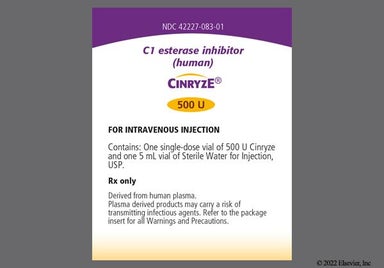 Cinryze is a C1 esterase inhibitor. It's used to help prevent swelling and painful attacks in people 6 years of age or older with hereditary angioedema (HAE). Cinryze is infused into the vein, typically every 3 to 4 days, by a healthcare provider. But if appropriate, your provider can train you to do the infusion at home. Common side effects of this medication include headache, nausea, rash and vomiting. Cinryze is only available at certain pharmacies.