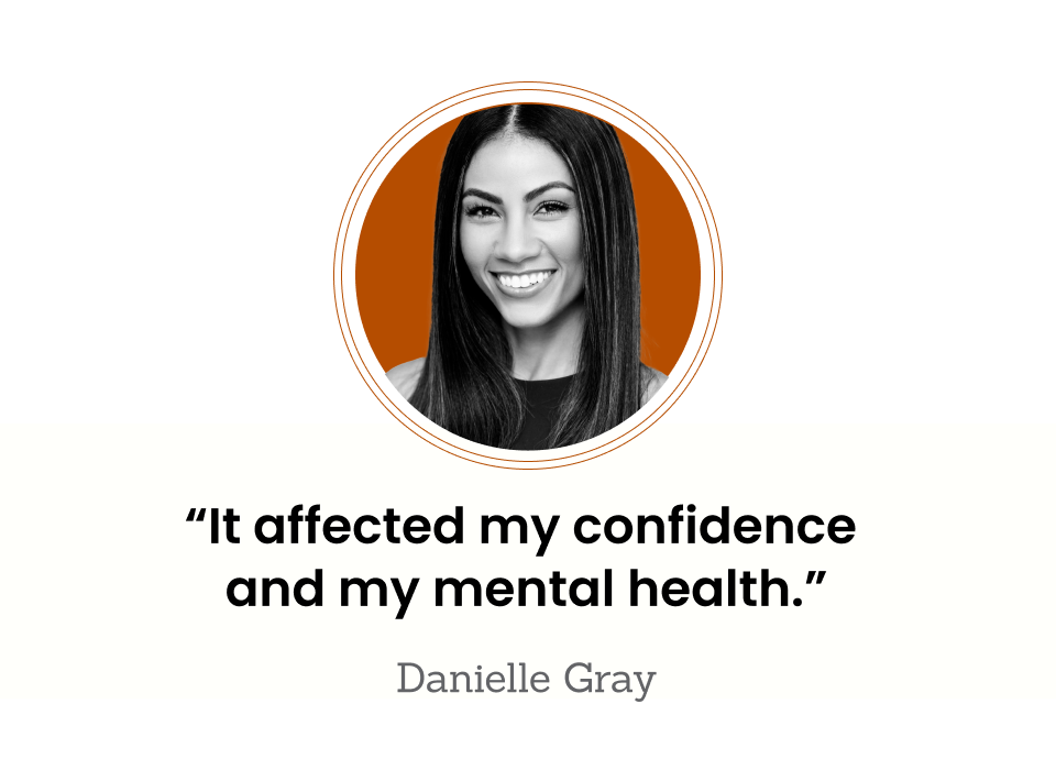 Danielle says she began to feel better once she found treatments that worked for her. She says she has tried medications such as oral Solodyn, topical Aczone, and Ziana. She also found cosmetic fading creams, and a curated skincare routine from her dermatologist, to help correct the hyperpigmentation.