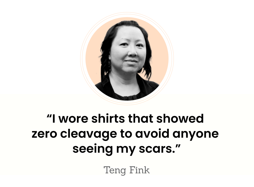 Teng says the scarring on her chest was “nearly impossible to get rid of. They still flare up and itch sometimes. But it’s definitely better than they were before the treatment.”