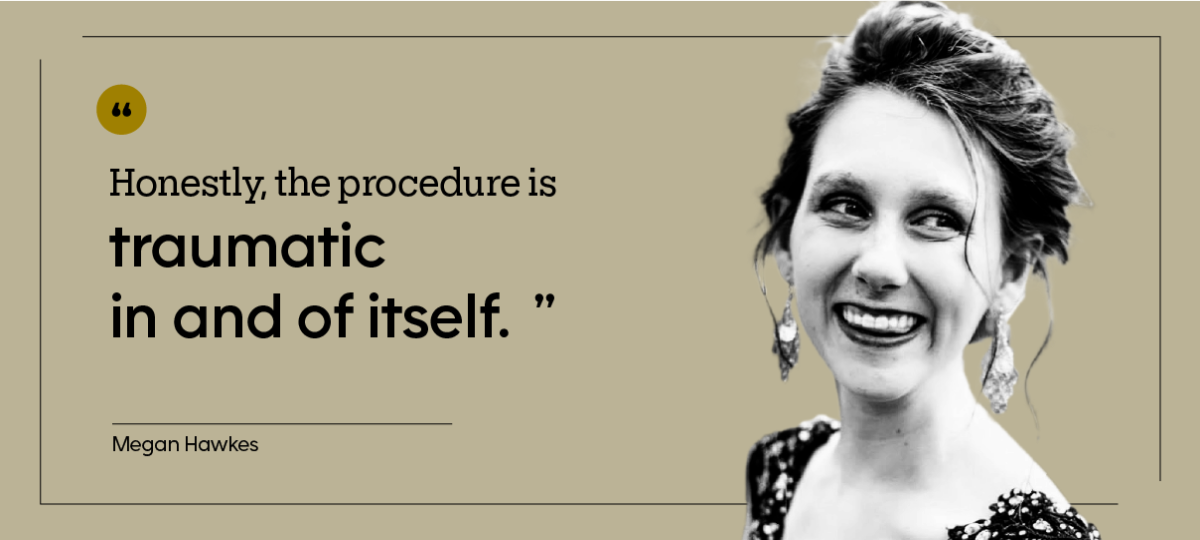 The second insertion was more difficult and required another doctor to assist — a male doctor who was on hand, although Megan prefers to work with a female healthcare team.