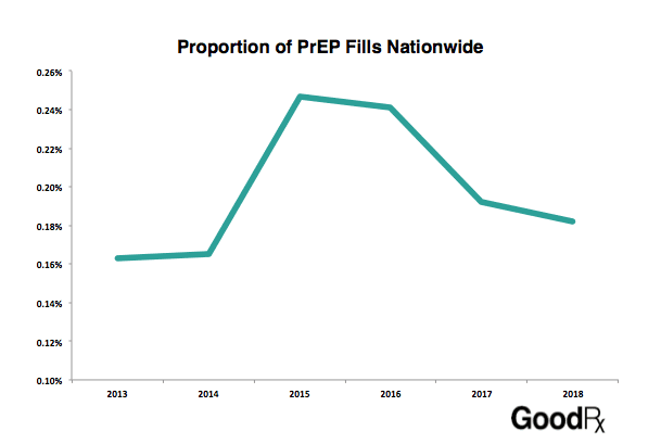 Despite its success, there has been a substantial decline in fills for Truvada over the last couple of years. At its peak in 2015, three years after Truvada was approved, nearly 0.26% of all prescriptions in the United States were for Truvada. However, Truvada fills have declined by 30% since then, and now account for only 0.18% of total fills.