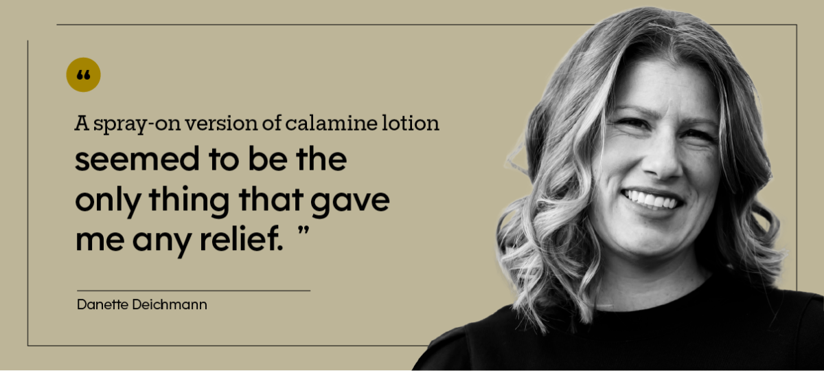 “You don’t want patches of redness all over your skin,” she says, explaining that she tried aloe vera and cortisone creams, but the itchiness persisted. “A spray-on version of calamine lotion seemed to be the only thing that gave me any relief.”