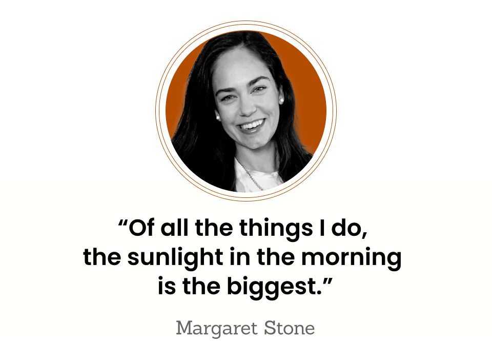 “That helps me to naturally set that rhythm right when I wake up in the morning,” she says. “My body is learning that this is the daytime.”