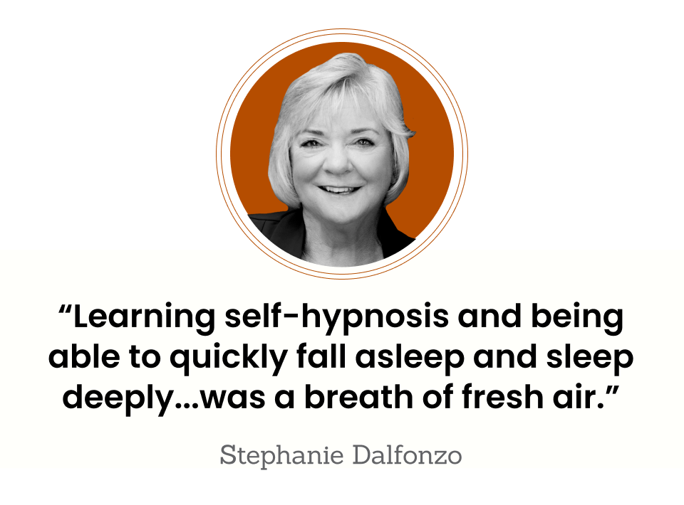 From there, Stephanie — now 63 and living in Danbury, Connecticut — began to explore hypnosis, which ultimately became her answer to insomnia. She’s since become a certified hypnotist and written a book about how she overcame her anxiety.