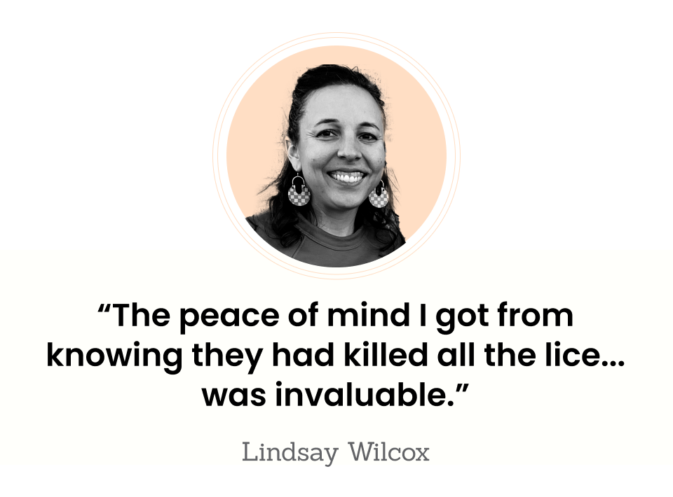 “The peace of mind I got from knowing they had killed all the lice and the eggs and feeling instant relief was invaluable,” Lindsay says of her clinic experience. She adds that “the at-home treatment seemed to work well for my daughter. We checked her hair daily and didn't see any more lice.”