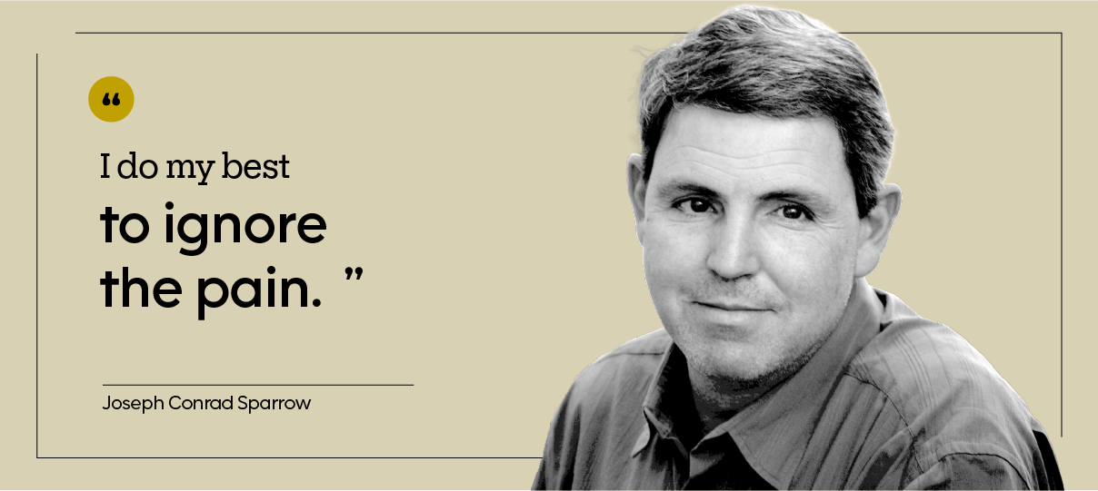 Joseph Conrad Sparrow, 57, of Bowie, Texas, has lived with a hernia for 4 years. It appeared one day while he was doing some work to help out a friend.