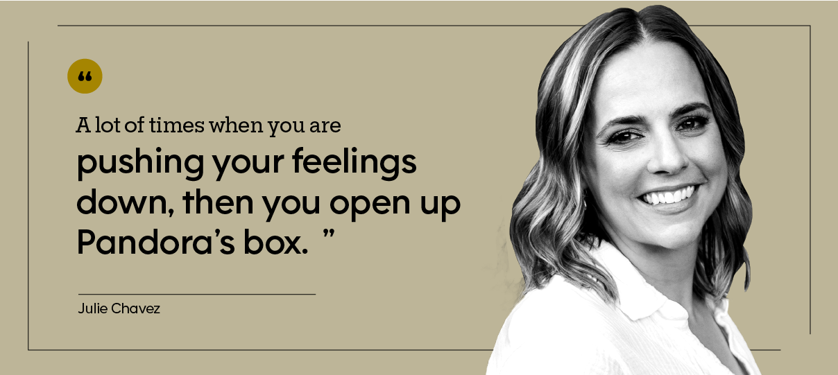 “A lot of times when you are pushing your feelings down, then you open up Pandora’s box,” Julie says. “There is an initial surge.”