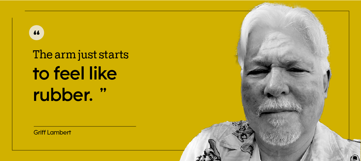 In April 2022, Griff was about to go shopping when he started to feel odd. His right arm felt weak, so he went home. The next day, he was setting up for an event and the odd sensation in his right arm returned.