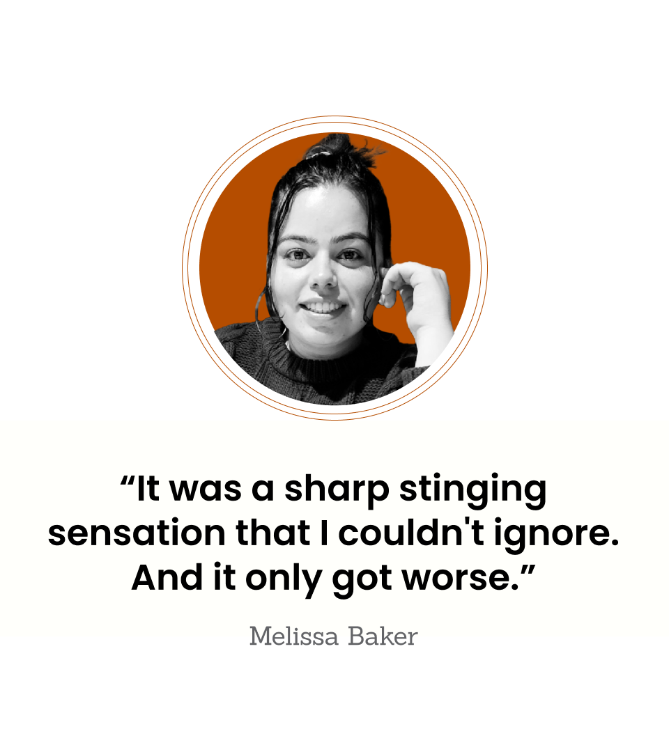 “It was a sharp stinging sensation that I couldn’t ignore. And it only got worse,” Melissa says. “I was an active person who loved playing sports and running. But, suddenly, I was faced with a painful problem that was impacting my ability to do the things I loved.”