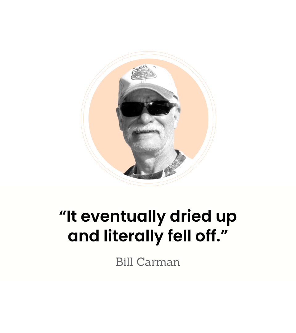 “It eventually dried up and literally fell off,” he says. Since then, he’s never had another one.