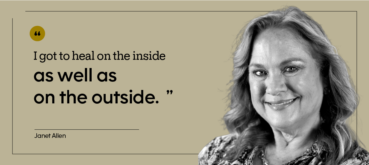 In her 40s, Janet had a challenging career in sales that required frequent travel, and she was also raising a family. All of that stress snowballed: “I became last on my list,” she recalls.
