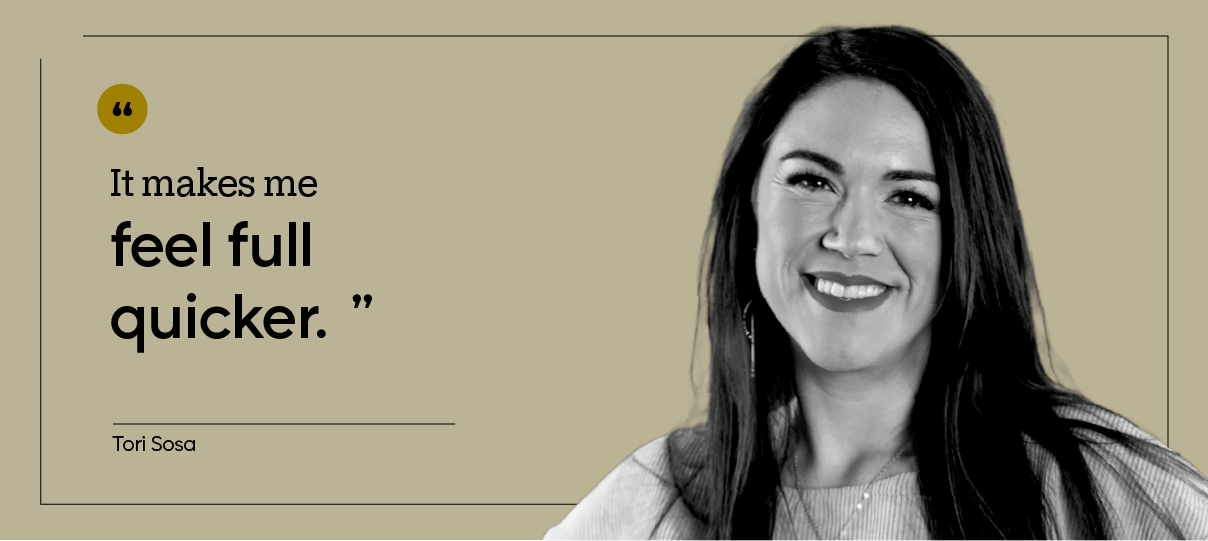 “It makes me feel full quicker,” she says. “I started eating probably half the amount of food I was eating before. And it cut back my cravings an outstanding amount.”