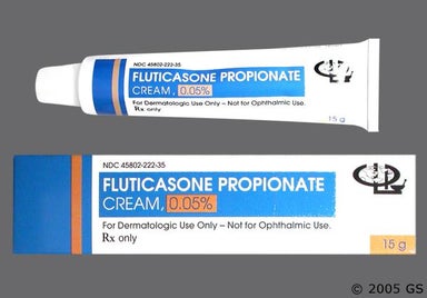 Fluticasone propionate topical is a steroid medication that's used to treat different skin conditions. It's available in many different formulations, including a cream, ointment, and lotion. The typical directions are to apply a small amount of medication onto the skin one to two times a day, as directed by your provider. While side effects aren't common, it's possible to experience skin burning and itching where you used the medication. Fluticasone propionate topical is only available by prescription; it can't be purchased over the counter.