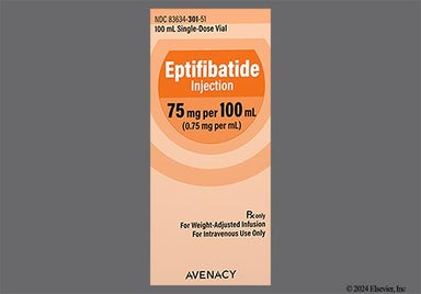Eptifibatide is an antiplatelet (blood thinner) medication that helps prevent blood clots. It's given as a continuous infusion through the veins to adults in the hospital receiving medications that treat a heart attack or to those undergoing a procedure that opens clogged blood vessels.