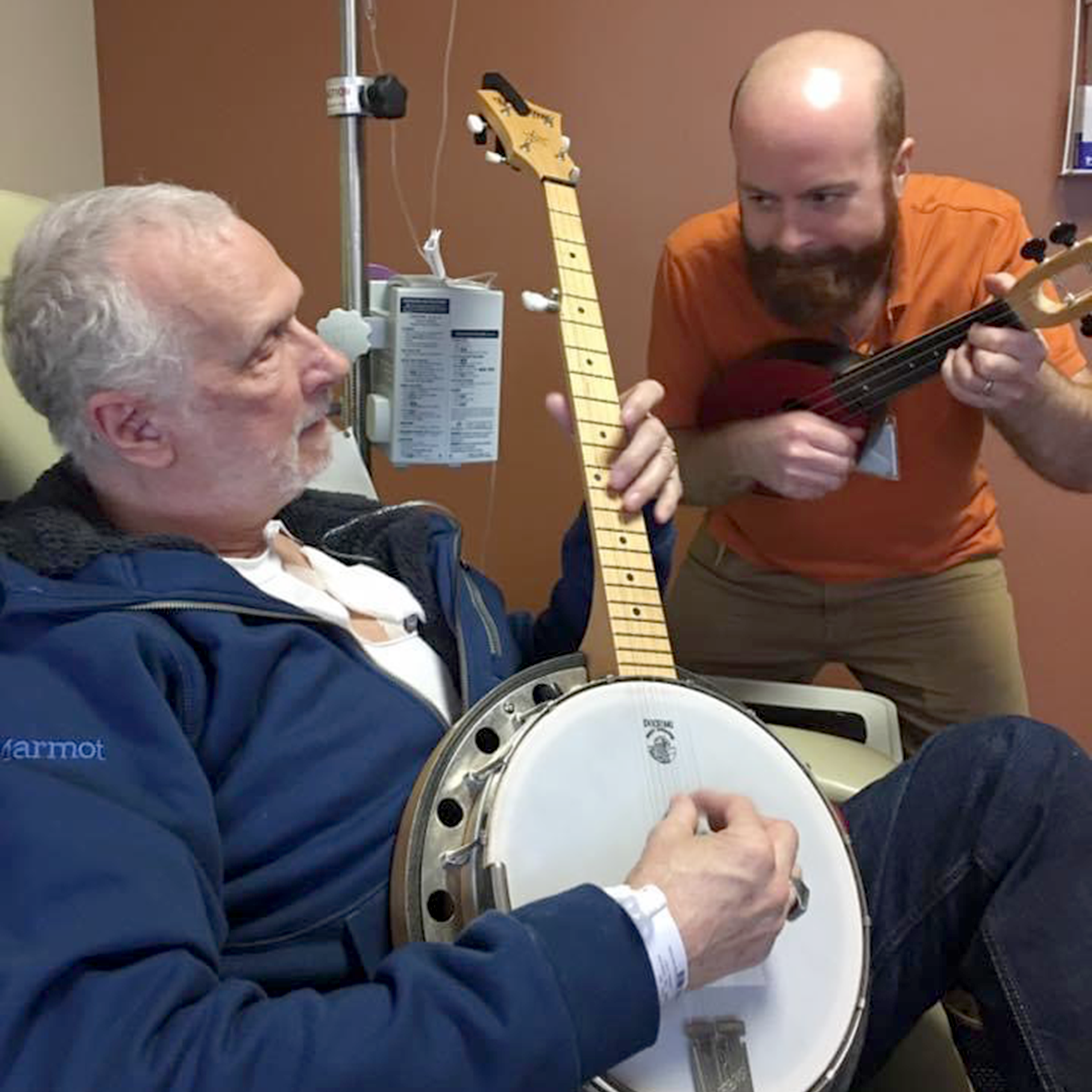 Sessions with Brian helped make chemotherapy days easier for Tim to endure. Instead of thinking about the medications flowing into his veins, Tim could focus on the joy of music. And the treatments paid off: Tim went into remission for about a year.