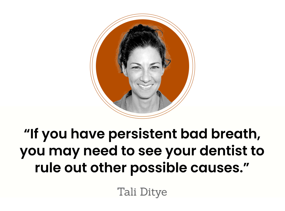 “If you have persistent bad breath, you may need to see your dentist to rule out other possible causes,” Tali says.