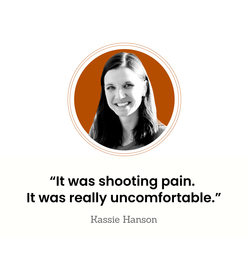 “It even hurt to walk,” Kassie says. “If I had to move in a particular way, like, if I had to twist in a specific way and lean over to get a kid or get a toy that dropped, it was shooting pain. It was really uncomfortable.”