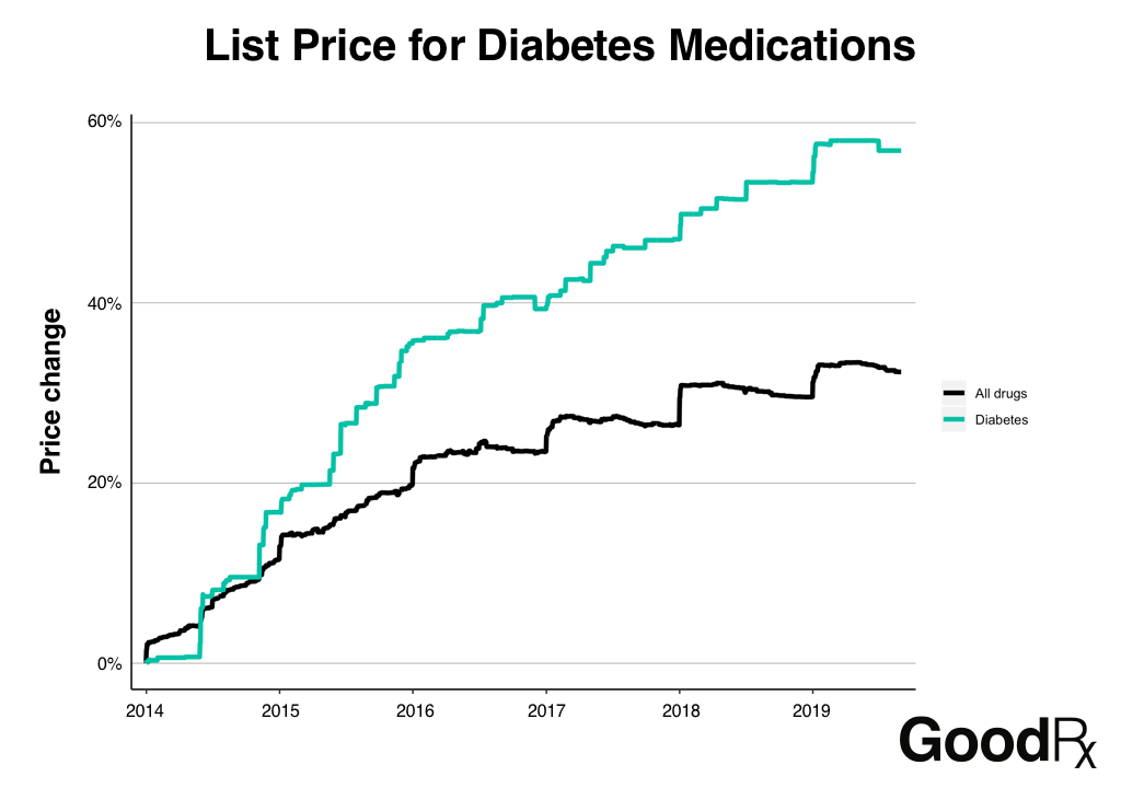 Prices for diabetes medications are also on the rise. Since 2014, the average list price for diabetes medications has increased by 58%.