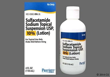 Sulfacetamide (Klaron) 10% is a topical sulfa antibiotic lotion used to treat acne in people ages 12 years and older. The directions are typically to apply a thin layer to the affected area(s) of skin twice per day. Sulfacetamide (Klaron) is available in both brand-name and generic versions. It's not available over the counter (OTC), so you'll need a prescription from a healthcare professional. Side effects are pretty rare with this medication, but can include skin irritation or burning.