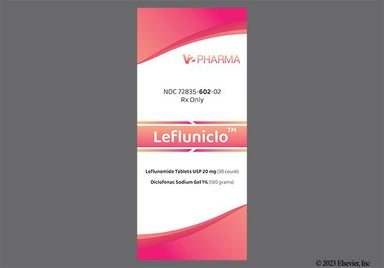 Lefluniclo (leflunomide / diclofenac) is a prepackaged kit that contains two medications that work together to lower inflammation, which helps to treat symptoms of rheumatoid arthritis: