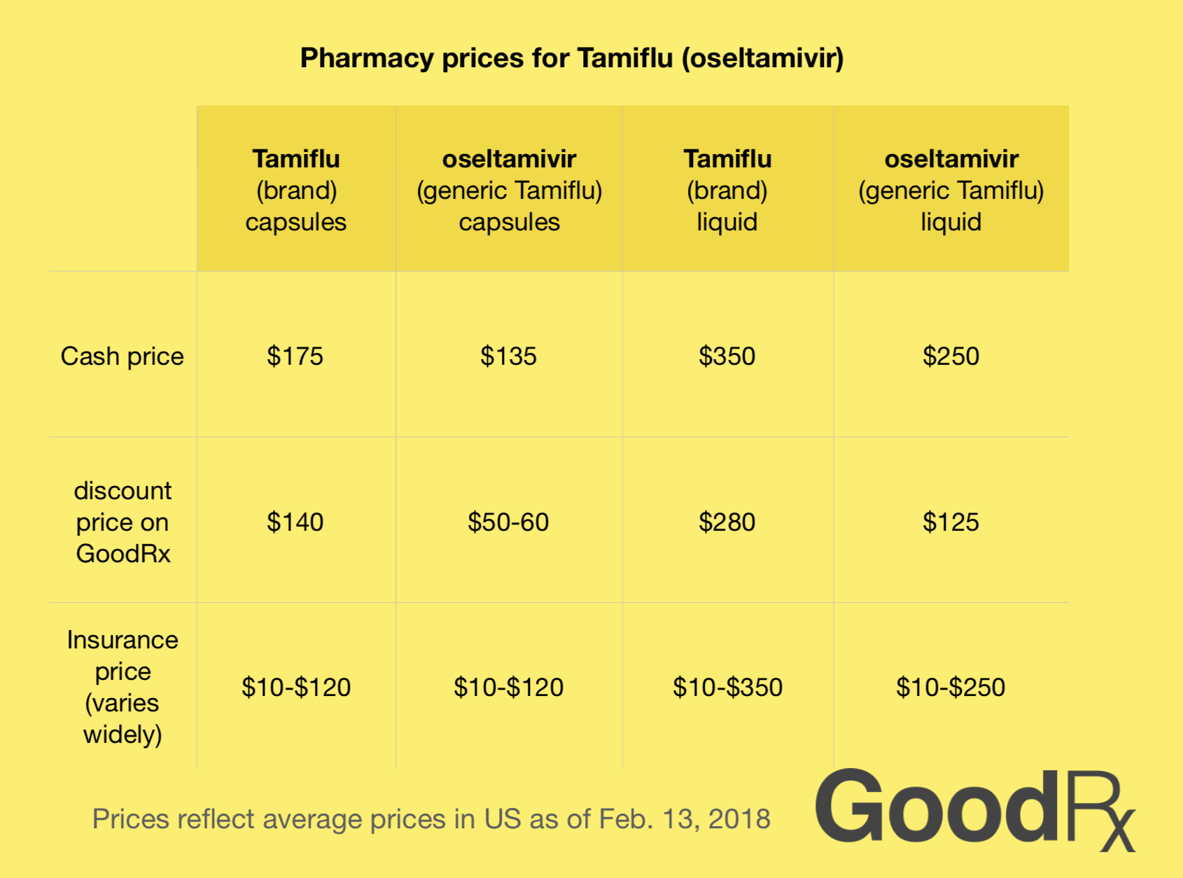 GoodRx also has discounted prices for the brand version of Tamiflu—instead of $175, we have a price of around $140.