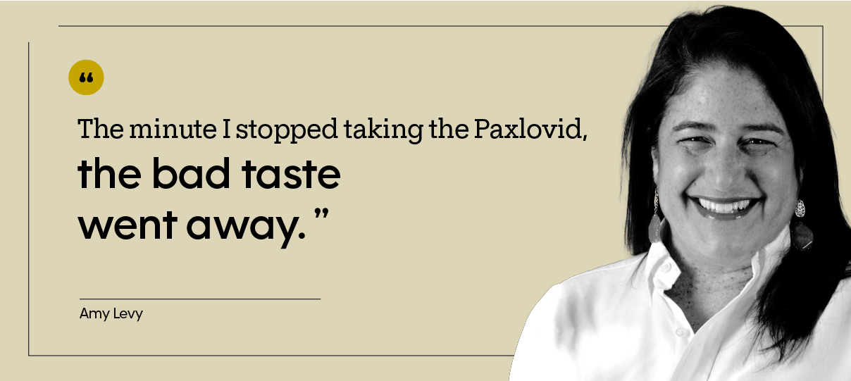 To help Amy combat Paxlovid mouth, her friend dropped off two boxes of Hot Tamales for her. The cinnamon candies helped conceal the bad taste. And, she says, “The minute I stopped taking the Paxlovid, the bad taste went away.”