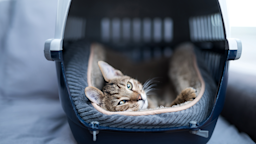 “Turn it into a game,” says Richter. “Get your pet really accustomed to the carrier, so when you do have to travel, they’re not super stressed.”