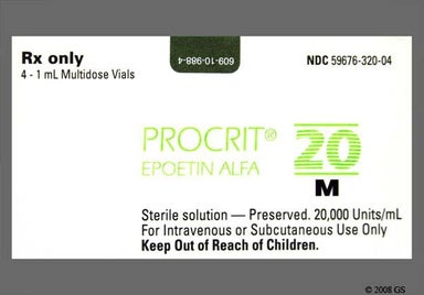 Procrit (epoetin alfa) is an injection used to treat anemia, or low red blood cell count, caused by chronic kidney disease (CKD), taking zidovudine for HIV, or cancer chemotherapy. It's also used to reduce the need for blood transfusions in people undergoing certain surgeries. The medication given as a shot under the skin or into a vein, often in a clinic, dialysis center, or sometimes at home. Depending on your condition, you might take it once a day, once a week, or 3 times a week. Common side effects include high blood pressure, fever, and muscle or joint pain.