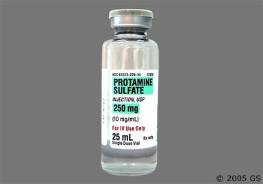 Although rare, protamine can cause severe heart problems, including low blood pressure, slow heart rate, sudden collapse, and fluid overload in the lungs. Your provider will monitor your vitals closely before, during, and after you receive protamine and provide treatment if needed.