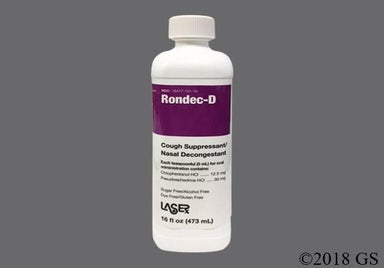 Rondec-D (chlophedianol / pseudoephedrine) is a combination medication that helps relieve symptoms of cough and stuffy nose from the common cold, seasonal allergies, and other upper respiratory allergies. It's available as a liquid solution that you can purchase behind the pharmacy counter with a valid form of identification.