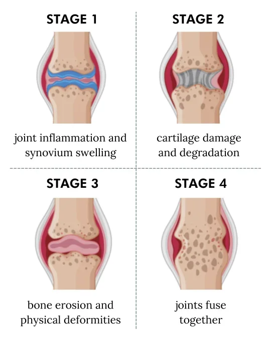 The first stage of treatment works to aggressively halt inflammation to prevent further damage and long-term complications, according to the Arthritis Foundation. Recent treatment options have allowed doctors and patients to control RA better and significantly slow the progression of the disease.