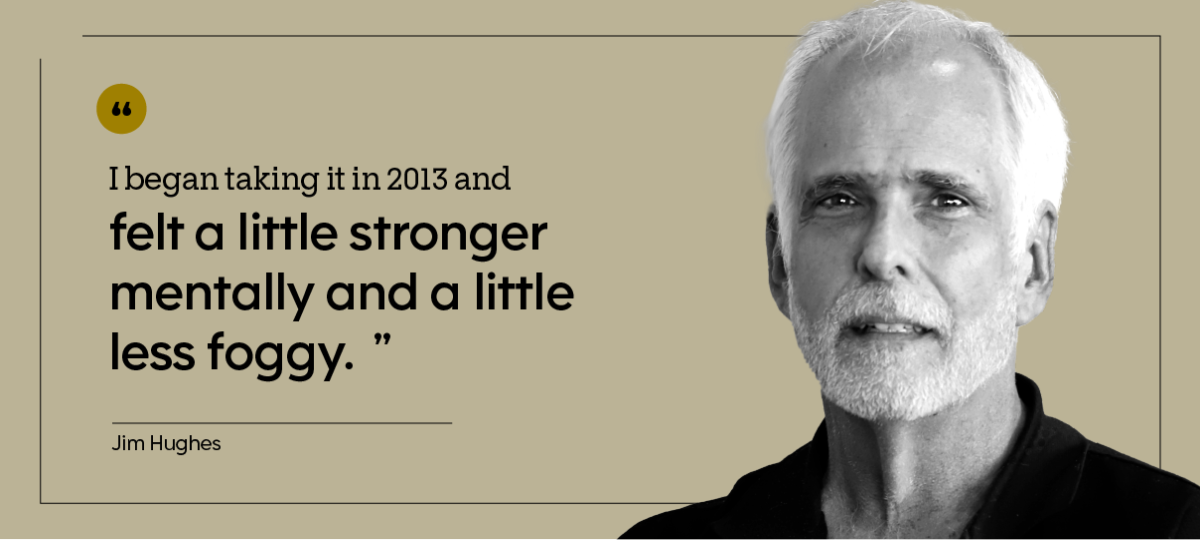 “I stopped taking it for several weeks to see if there was a difference, and there was,” Jim says. “I seemed to feel a little slower on getting information out of my head — just a minor lag, but it was definitely there.”